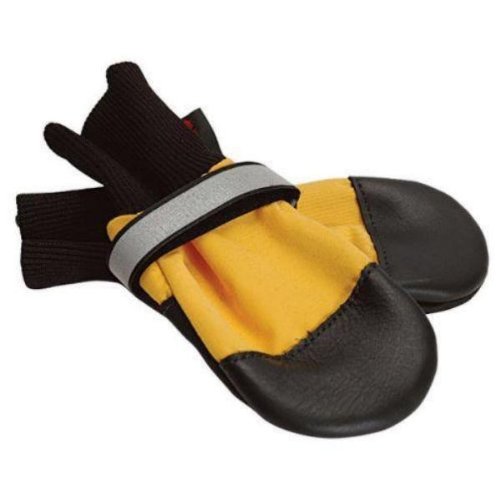 These water and salt resistant leather bottom boots breathe naturally, repel water and retains character even after exposure to the elements. This high-quality boot features self-tightening 3M reflective straps, leather soles, new leather toe covers (on sizes M - XXL) and cuffs that come up the leg. These boots are available in black only. They are sold in sets of four and come in 8 sizes ranging from Itty Bitty to XXL. How to Measure: Stand paw firmly on ground and measure heel of paw to edge of toenails (excluding fur). Note: A snug fit is best - boots that are fitted too large may slip off. SUGGESTED BREEDS MEASUREMENT: Itty Bitty-Chihuahua, Toy Poodle 1 1/2"; XX Small-Jack, Russel, Lhasa Apso, Pug 2 1/4"; X Small-Sheltie, Min. Schnauzer, Dachshund 2 3/4"; Small-Beagle, Border Collie, Wheaton 3 1/4"; Medium-Doberman, Lab, Retriever 3 3/4"; Large-German Shepperd, Borzois 4 1/4"; X Large-Akita, Old Eng. Sheepdog 4 3/4"; XX Large-Great Dane, Bouvier 5 1/2".Read more Muttluks - All-Weather Size Small