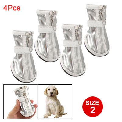 Buy Jardin Dog Faux Leather Zipper Boot, Size 2, 4-Piece, Silver Tone White