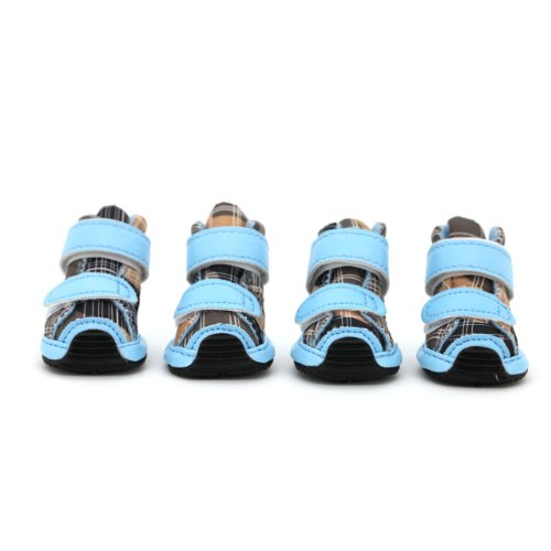 Wonpet Dog Shoes Grid Double Blet PU Leather Climbing Shoes Blue Size 3 Description