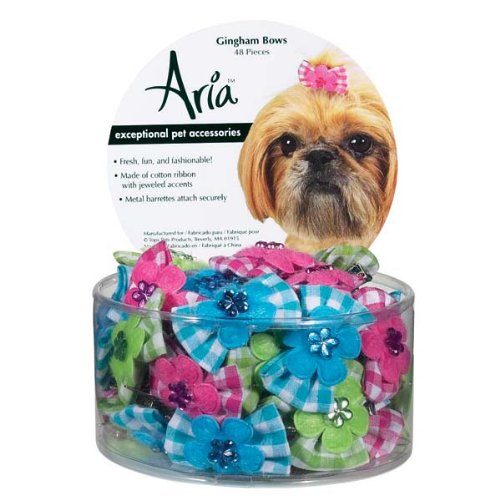 Find for item features and simillar products of Aria Gingham Dog Bows Canister 48 Pcs. Help in your choosing.