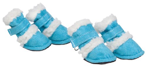 Our Pet Life Shearling "Duggz" shoes are truly a unique item. Duggz are fully covered with Sherpa and suede, so your dog can now travel with real fashion in these comfortable shoes. These shoes also feature Thinsulate insulation inner lining, keeping your dog even warmer! Sizing instructions: Measure the sole of your pet's foot - Length x Width (in inches): | X-Small: 2.4" x 1.5" | Small: 2.8" x 1.7" | Medium: 3.0" x 1.8" | Large: 3.4" x 2.0" | X-Large: 3.7" x 2.2"Read more Pet Life Shearling "Duggz" Dog Boots in Blue & White - Medium