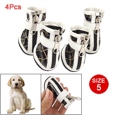 Product Name : Como 4 Pcs Black White PU Faux Leather Zipped Boots Shoes for Pet Dog Size 5