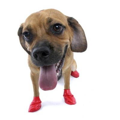 PZ1031 Size: Small (up to 2.5"), Color: Red Features: -Dog boot.-All natural materials.-Disposable, reusable, waterproof.-Bends with paw and absolutely stays on.-Protection from ice, snow, salt, lawn chemicals and hot surfaces.-Assists with traction control and allergies.-12 Pack.-Made in the USA.