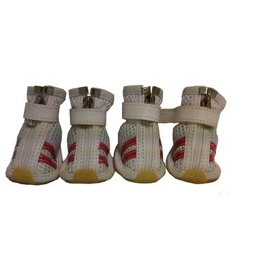 Product Description : Mesh Spring Dog Shoes - Wider Fit in White and Red Size: Small (2.8" x 1.7")