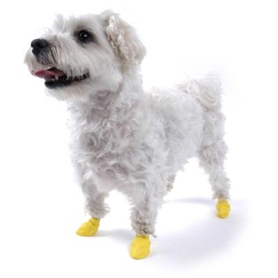 These lightweight and simple dog boots are incredibly versatile. They can be used to protect your dogs feet from hot sand, to cover wounds so they heal faster, to keep clean feet from getting muddy at a dog park or in a kennel, and to keep muddy feet from getting your carpet and couch dirty. Theyll keep snow from packing between your dogs toes, provide protection from road salts and lawn chemicals, and provide traction. Since theyre made of natural rubber these boots are waterproof, reusable, disposable, and biodegradable. Dogs dont mind wearing them because theyre so thin and comfortable; just slip them on and start walking. Each package contains 12 identical rubber boots. Sizes Tiny fits paws up to 1 inch front to back XX-Small fits paws up to 1 1/2 inches front to back X-Small fits paws up to 2 inches front to back Small fits paws up to 2 1/2 inches front to back Medium fits paws up to 3 inches front to back Large fits paws up to 4 inches front to back XL fits paws up to 5