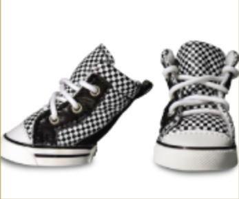 Sneakers for dogs, made out of fleece-lined checkered print, provides protection in harsh weather, dogs paws will not scratch hard wood floors.